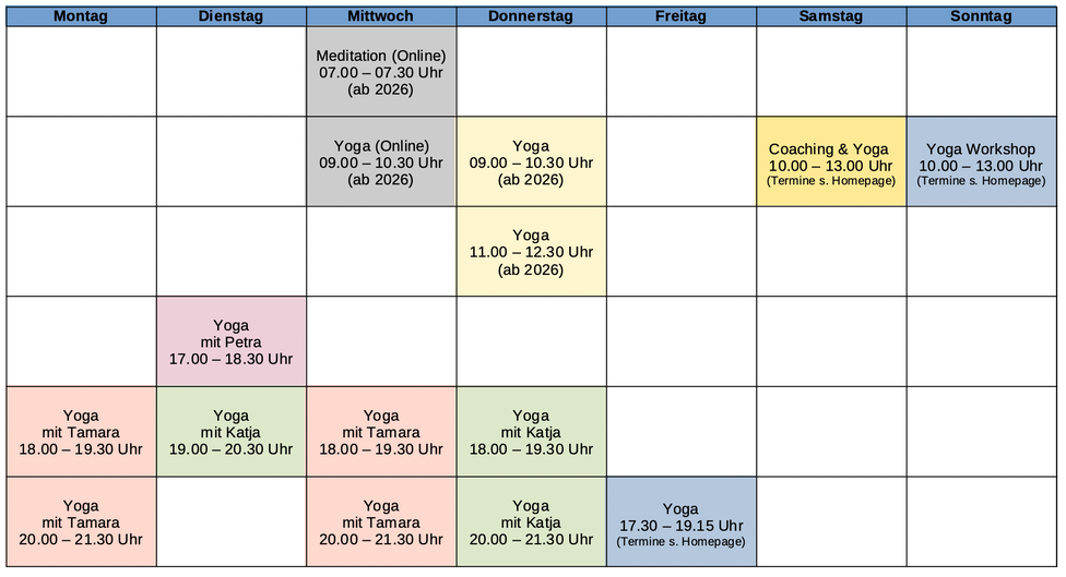 Probestunde (15 €) - Probeabo (3 Einheiten, 45 €) - Privatunterricht (Yoga, Atemtherapie) auf Anfrage